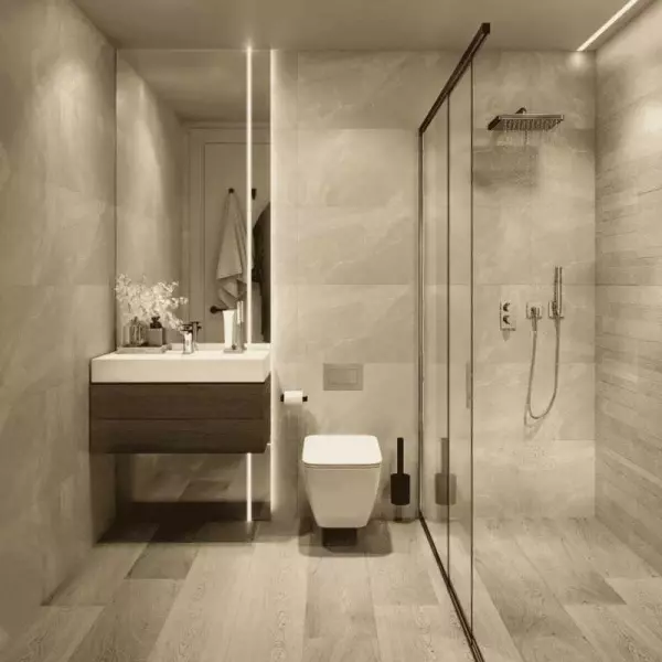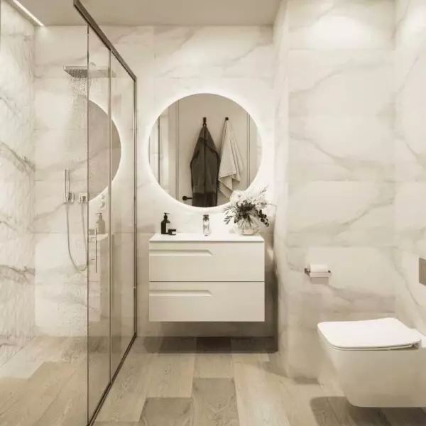 Квартира площадью 113.72 кв.м. состоит из трех спален, двух ванных комнат, просторной гостиной с открытой кухней, просторной террасы 28 кв.м., на которой можно любоваться шикарными видами, организовать зону барбекю.