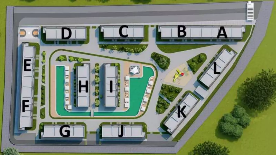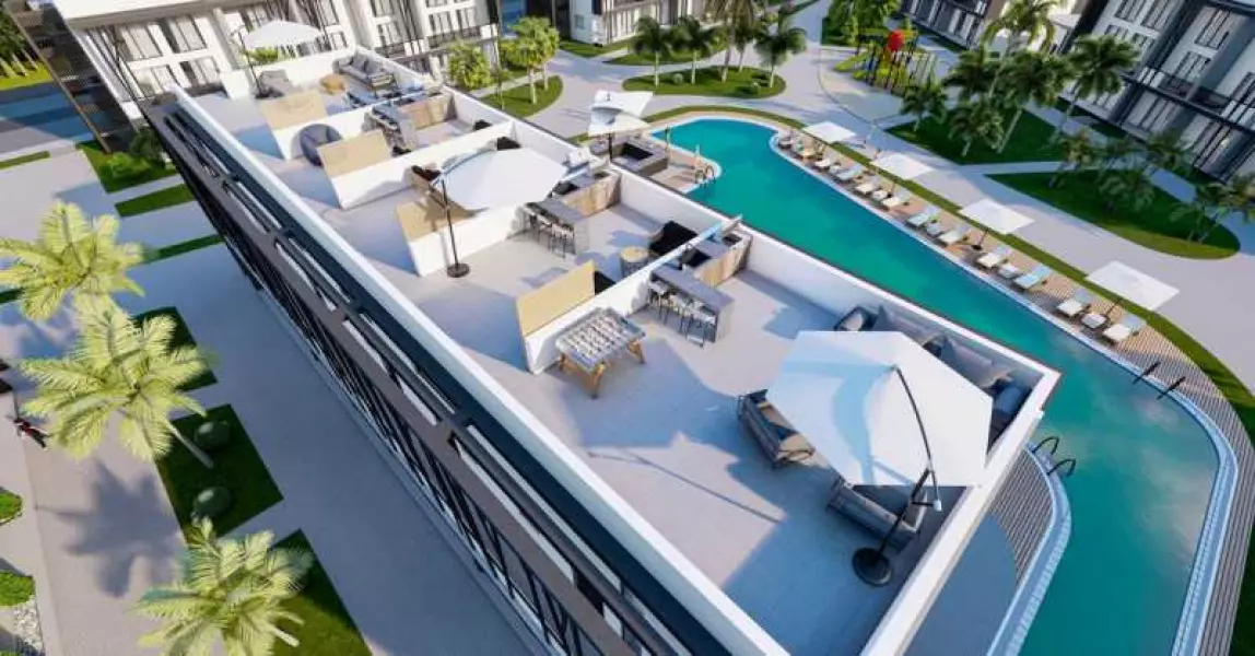 Удобное расположение: Комплекс находится всего в 1 км от знаменитого пляжа Long Beach, в 10 км от Восточно-Средиземноморского университета, и в 40 км от аэропорта Эрджан. Также рядом расположены супермаркеты, школы, больницы и другие важные объекты инфраструктуры.