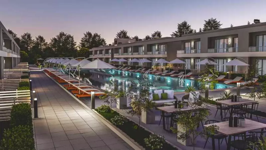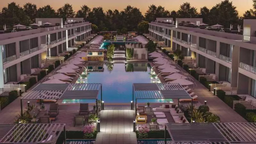 Комплекс охватывает обширную территорию в 21 000 м2 и предлагает разнообразные удобства, такие как ресторан, кафе-бар, бассейны, спортивные площадки, бассейн для детей, зеленые зоны, пешеходные тропы, парковка, центральный генератор и система видеонаблюдения.