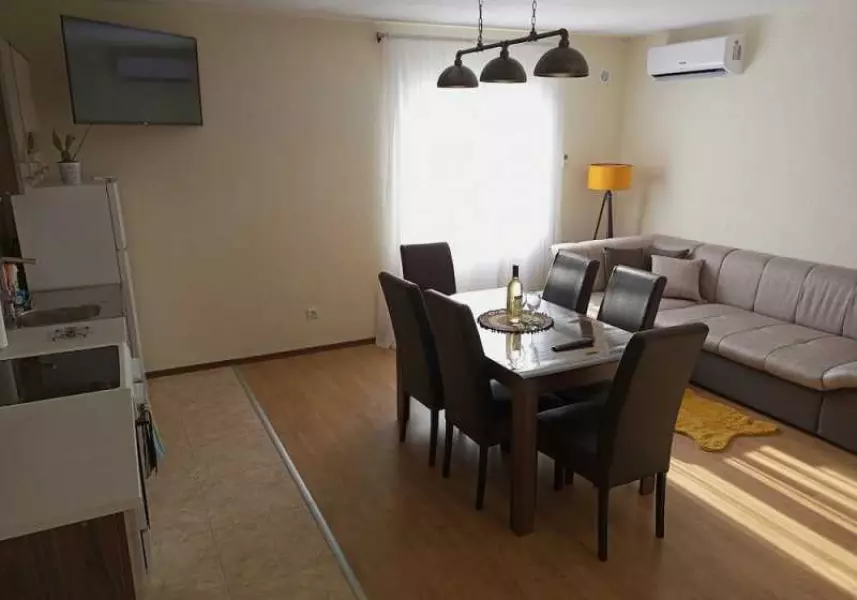 - дом состоит из двух совершенно автономных квартир с двумя спальнями, площадью 90 кв.м., каждая. В каждой квартире – большая гостиная с кухней и обеденной зоной, две спальни, санузел с душевой кабиной и туалетом, терраса