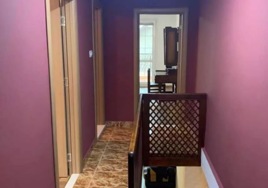 Второй этаж - коридор с двумя спальнями и ванной комнатой, а также большая терраса