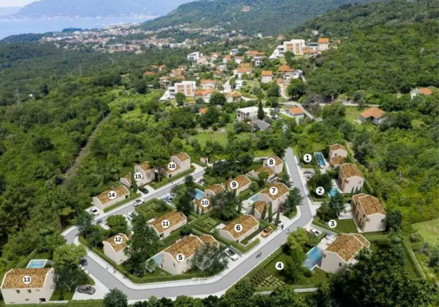 Бока Котрская бухта, район Кавач. Современный коттеджный посёлок из крошечных домов, с собственными участками.
