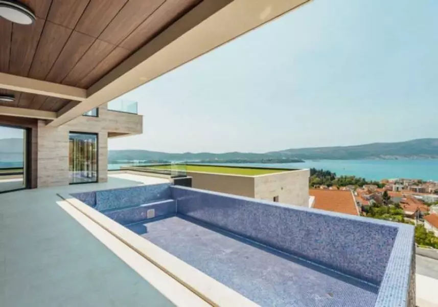 Третий этаж: спальня, ванная, джакузи под открытым небом на большой террасе.