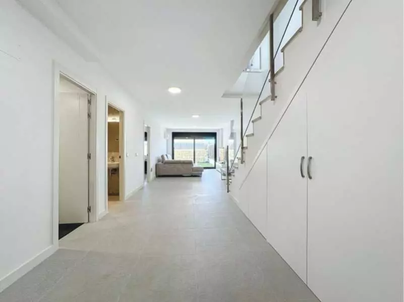 Квартира площадью 205 м2 имеет три спальни, две ванные комнаты, гостевой туалет, кухню, совмещенную с гостиной. Квартира продается полностью меблированной и укомплектованной. На первом этаже находим большую гостиную со встроенной кухней, две спальни, полностью оборудованную ванную комнату, туалет и две террасы. На втором этаже находится еще одна просторная гостиная с выходом на большую террасу площадью 27 м², где есть возможность добавления бассейна, как в некоторых соседних домах. Кроме того, здесь есть большая спальня, ванная комната и многофункциональное помещение, которое в настоящее время используется как офис. В ванных комнатах полы с подогревом.