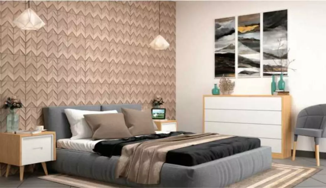 Площадь дома составляет 216,3 кв. м. Дом имеет пять спален, четыре ванные комнаты, гостиную совмещенную с кухней, три террасы и цокольный этаж (есть опция без отделки, а есть с отделкой).
