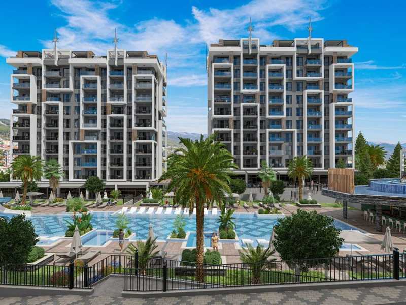 Предлагается к продаже современная квартира 1+1 площадью 47,5 м² на 8 этаже в новом жилом комплексе, расположенном между живописными горами Торос и знаменитым пляжем Инжекум, награжденным престижным "Голубым Флагом".