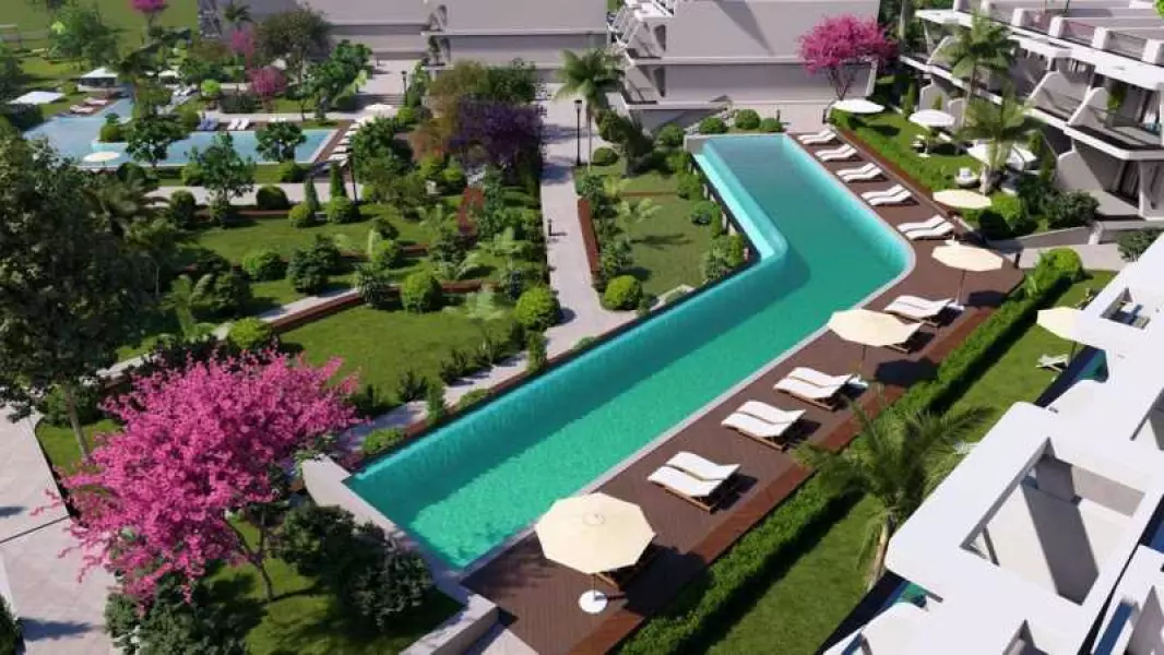 Состоящий из 102 квартир, размещенных в 9 блоках, комплекс предлагает разнообразные однокомнатные и двухкомнатные апартаменты, каждый из которых обладает своим уникальным преимуществом: либо частным садом, либо террасой на крыше с панорамным видом на море и горы.