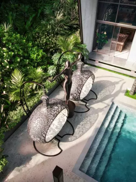 Из окон открывается захватывающий панорамный вид на тропический ландшафт и близлежащий комплекс вилл, инфраструктурой которого смогут пользоваться жители.