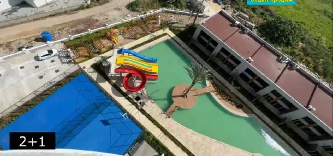 Огромный бассейн с баром и детскими горками приглашает вас провести время весело и комфортно, как для взрослых, так и для детей.