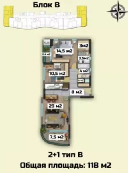 Представляем вашему вниманию роскошную квартиру 2+1 площадью 118 м2, расположенную на 7-м этаже в престижном районе Мерсина, предлагающую захватывающий вид на горы и море.