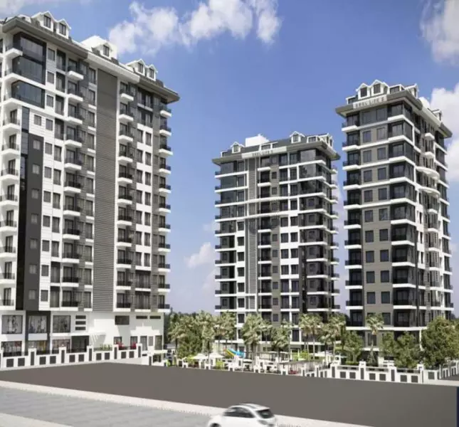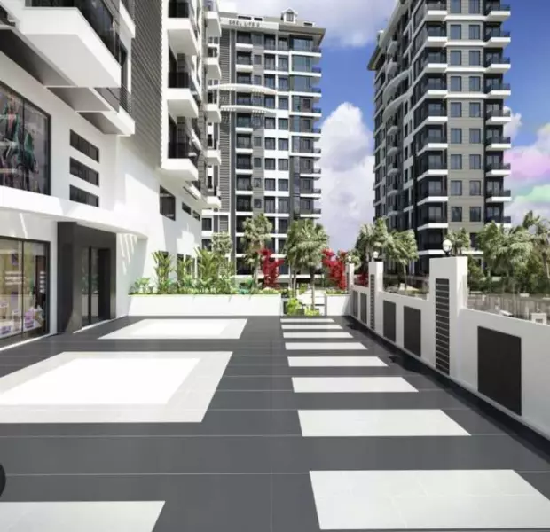 Квартира в жилом комплексе (в блоке В, с внутренним бассейном): расположена в центре района Махмутлар, на главной улице Барбаросса, всего в 250 метрах от моря.