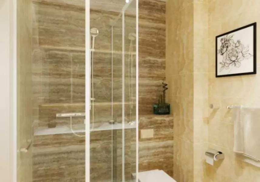 Гостиная с кухней и обеденной зоной, две спальни, терраса с видом на море, санузел с душевой кабиной и туалетом.