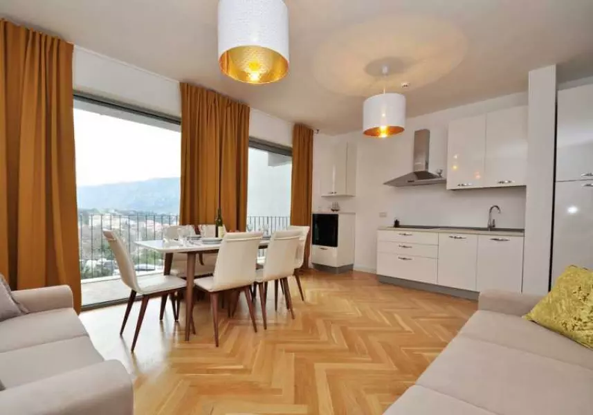 Стильная, новая квартира с 2 спальнями в элитном жилом комплексе бизнес-класса, который расположен на берегу удивительно красивой Которской бухты в поселке. Доброта с единой территории, парковка, бассейн, фитнес-центр, ландшафтный дизайн, инфраструктура.