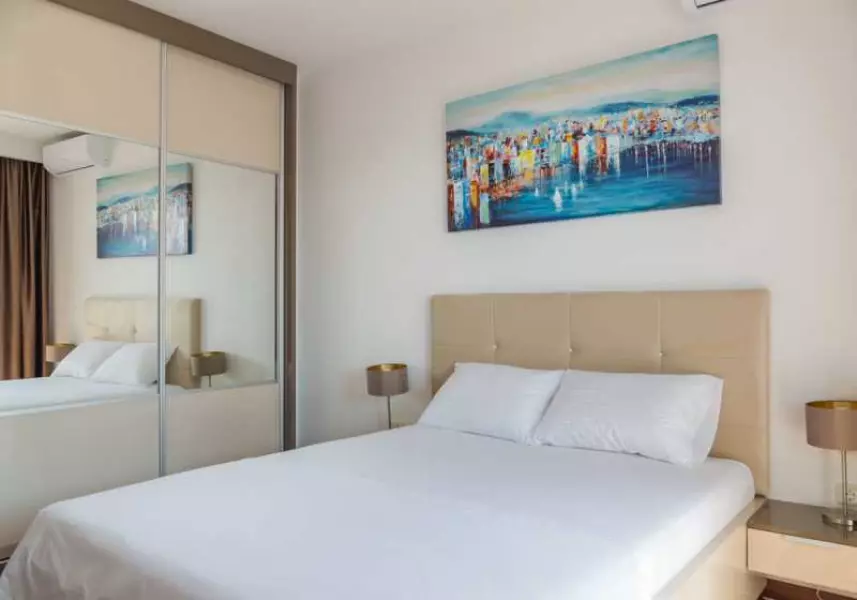 Популярный пляж Бечичи находится всего в 300 метрах, комплекс обеспечен гаражными и парковочными местами. Гранитный и дубовый пол, система кондиционирования, прогрев воды от солнечных батарей, домофон и видеонаблюдение, тёплые полы и высота этажей 2,75 метров – это характеристики жилья экстра-класса.