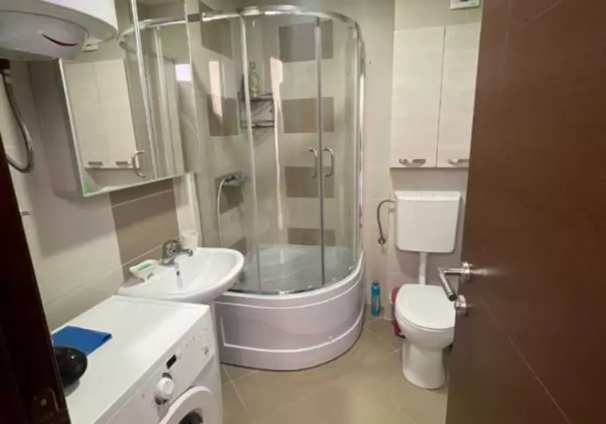 - прихожая, гостиная с кухонной зоной и столовой, одна спальня, санузел с душевой кабиной и туалетом, терраса