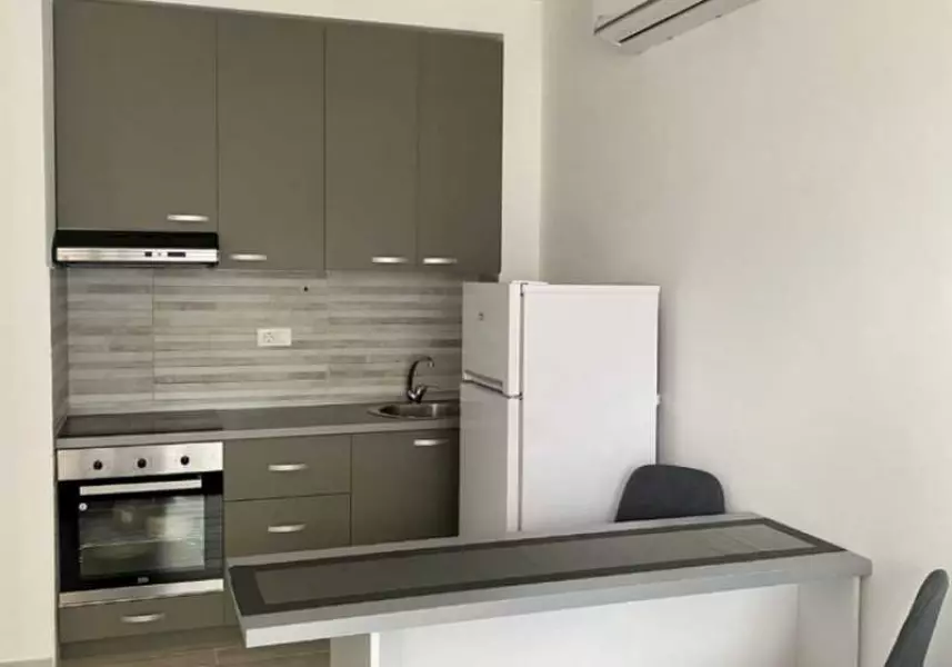 Гостиная, совмещённая с обеденной зоной и кухней, одна спальня, терраса с видом на море, санузел с душевой кабиной и туалетом.