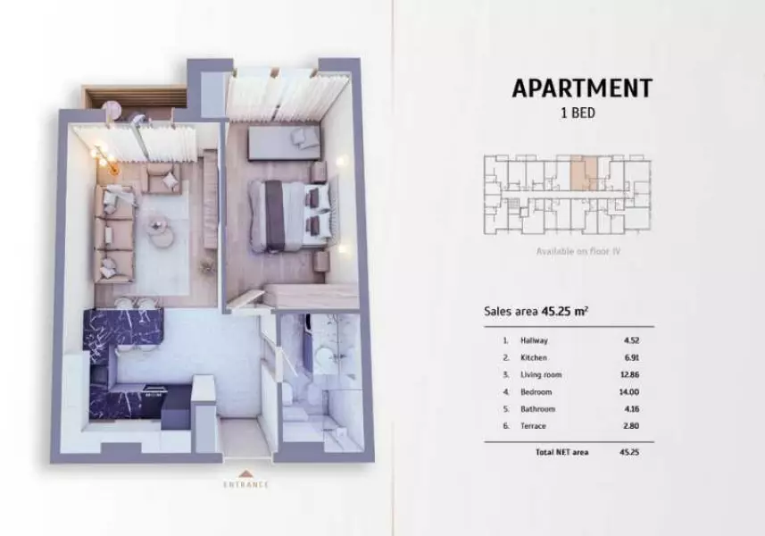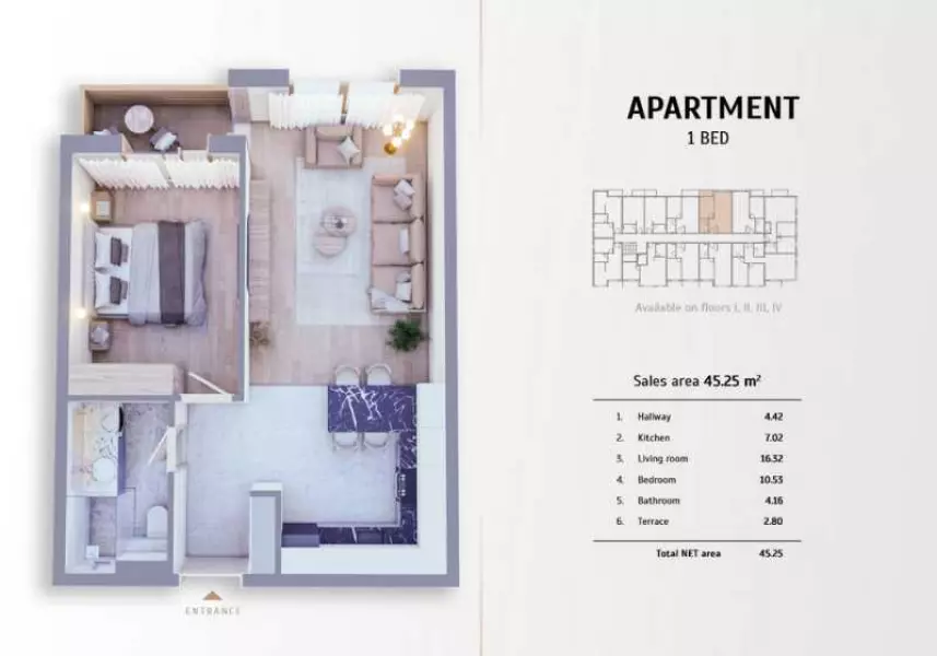 Площадь 45,25 кв.м.
