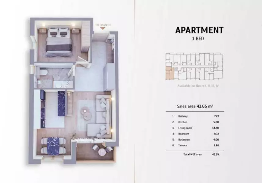 Площадь 43,65 кв.м.