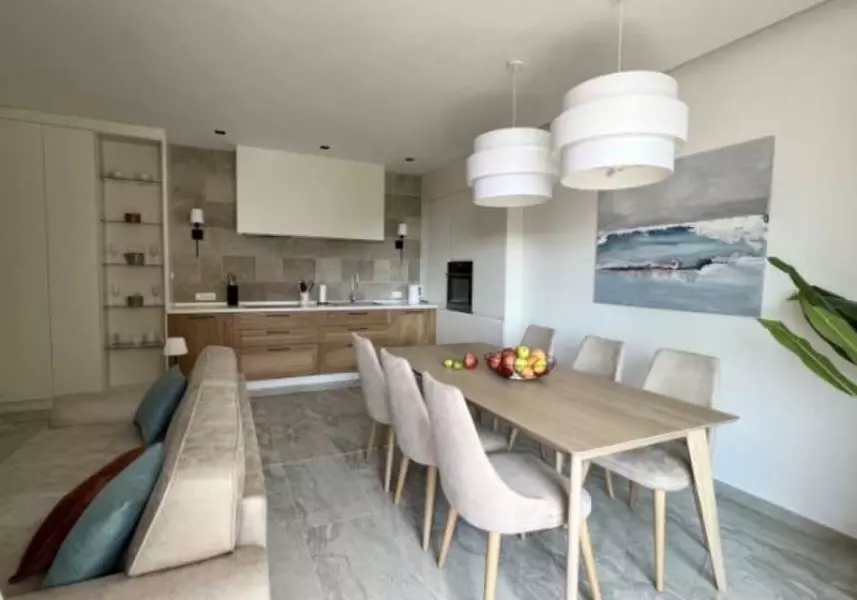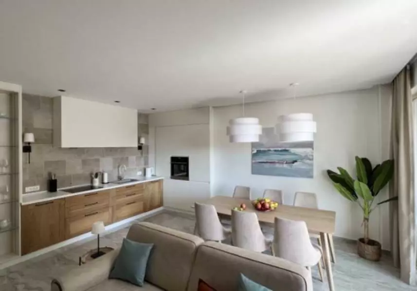 Высокое качество строительства, новая мебель, высококачественная сантехника и керамическая плитка, большая терраса.