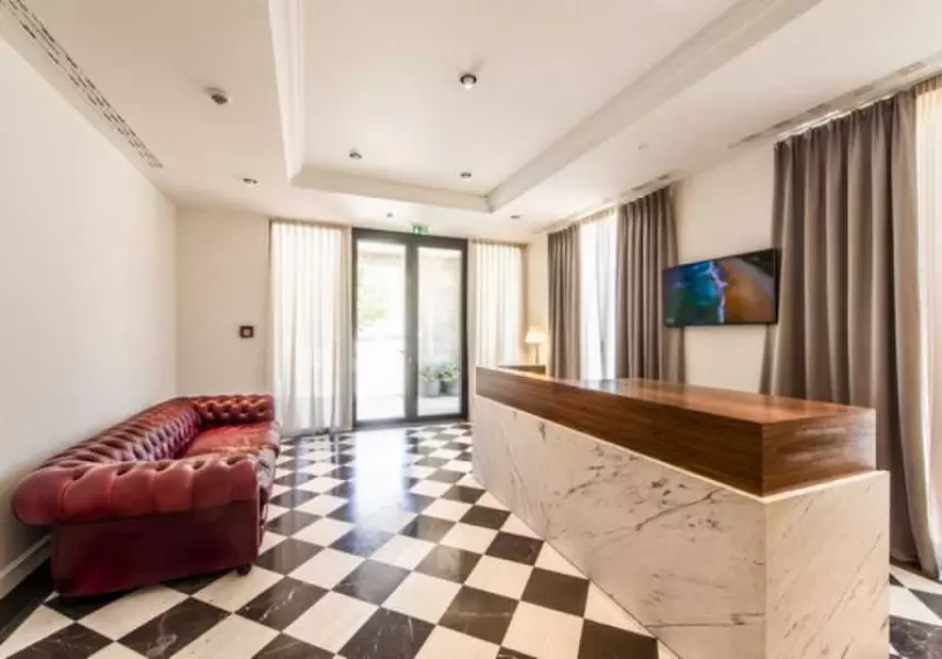 Второй этаж - гараж, в который можно подняться на лифте. К апартаментам можно из гаража подняться на лифте. Так же, из гаража можно попасть и в холл здания, и в ресторан и в винный бар.