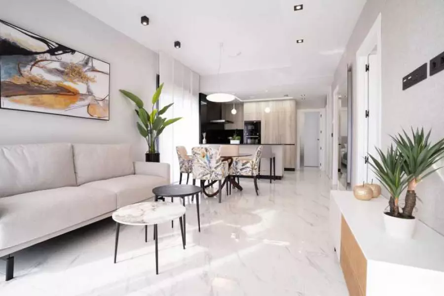 Квартира в новом закрытом комплексе в Ориуэла Коста. Ориуэла Коста — это живописный курортный район, часть испанского побережья Коста Бланка. Здесь можно насладиться исконным средиземноморским пейзажем – долинами, горными сосновыми и дубовыми рощами, лугами, насыщенными ароматами различных душистых растений. Окрестные соленые озера – бесценный источник важных минералов и лечебных грязей. Лагуна Салада – самое большое соленое озеро региона и близлежащий заповедный парк привлекает туристов со всего мира. Ориуэла Коста – известный испанский гольф-центр. Здесь находятся три известных гольф-клуба Las Ramblas de Orihuela, Campoamor и Villamartin.