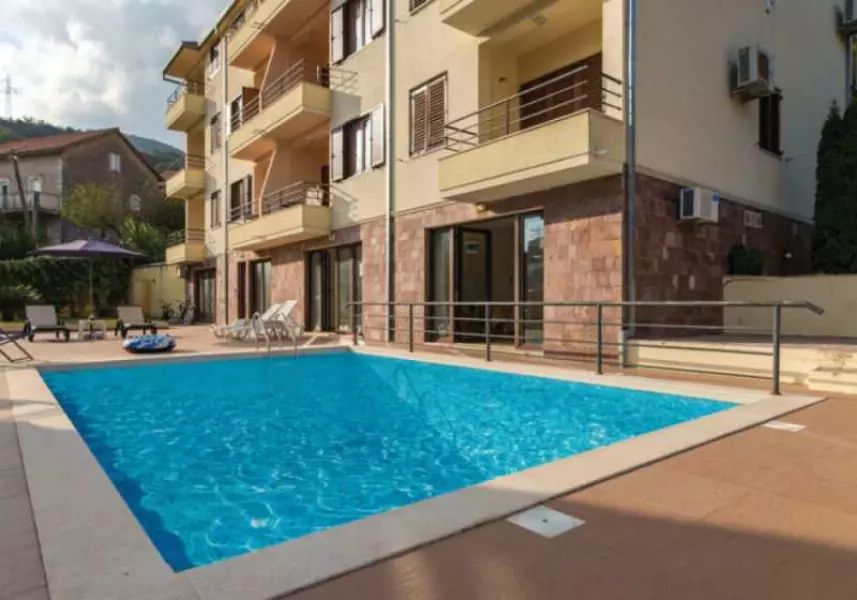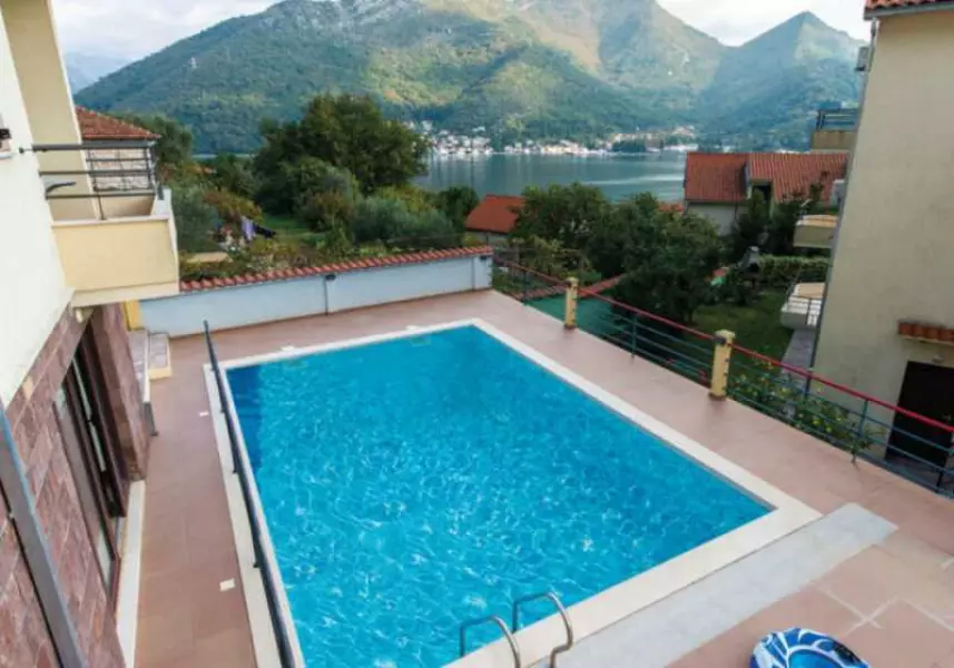 Бока Которская бухта, район Каменари. Двух уровневая квартира с тремя спальнями в жилом комплексе с бассейном.