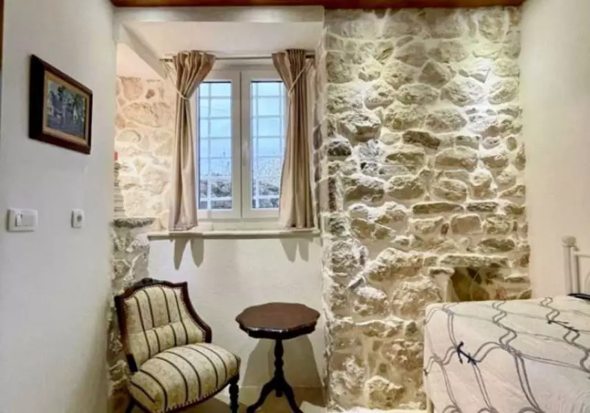 Натуральный камень, толщина стен 70см., здание летом хорошо держит прохладу и свежесть, зимой – тепло