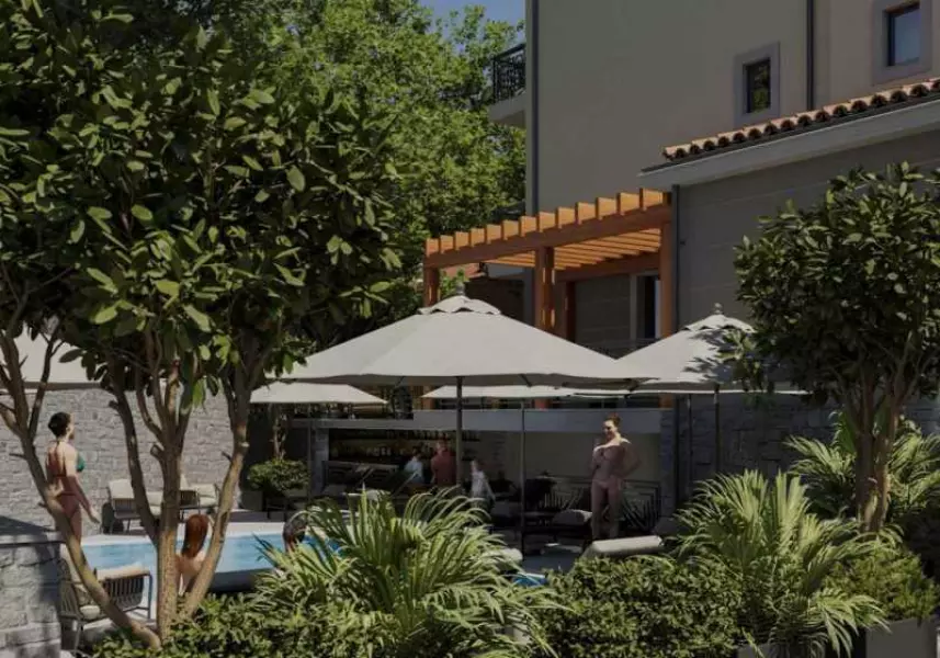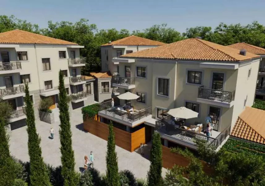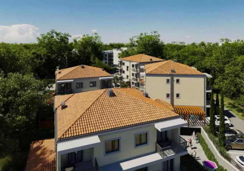 Озеленение прилегающих территорий, ландшафтный дизайн; концепция этого жилого комплекса – узнаваемый бренд в Черногории