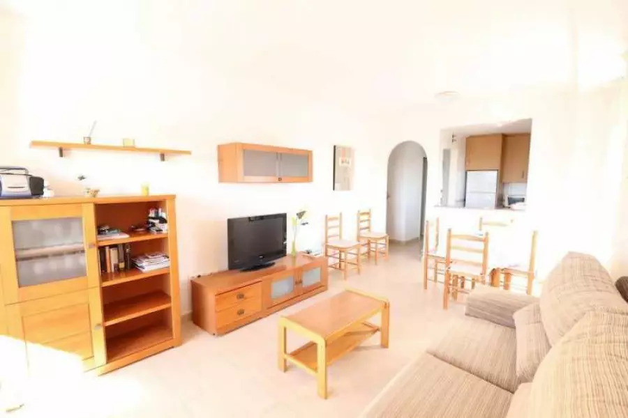 Две спальни, две ванные комнаты, гостиная, полностью оборудованная американская кухня, просторная терраса, откуда открываются красивые виды и где можно насладиться чашкой ароматного кофе или бокалом вкусного сухого испанского вина. Продается с мебелью и бытовой техникой.