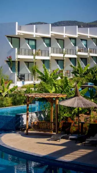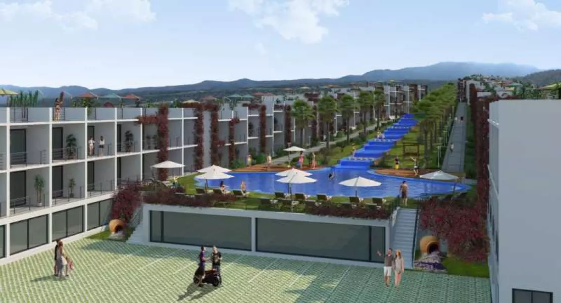 Комплекс состоит из 156 квартир-студий: квартиры-студии на первом этаже имеют общую площадь 35 м2, террасу в саду 8 м2 и квартиры-студии на втором этаже с общей площадью 35 м2, террасой 8 м2 и террасой на крыше 35 м2.