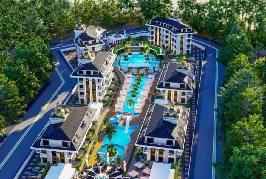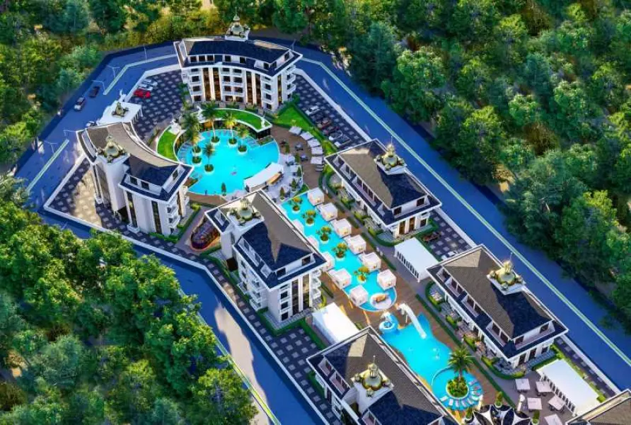 Комплекс находится в 2 километрах от моря и в 21 километре от центра Алании.