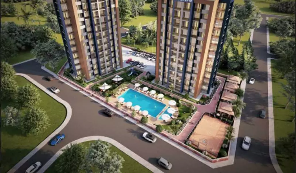 Новый строящийся проект на участке земли площадью 4.400 м2 будет состоять из 2-х блоков по 12 этажей.
