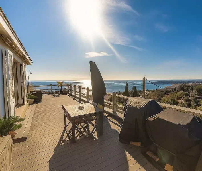 Этот уютный 3-комнатный дом, расположенный на холмах над Ментоной, в солнечном и спокойном месте, предлагает идеальные условия для жизни между морем и горами.