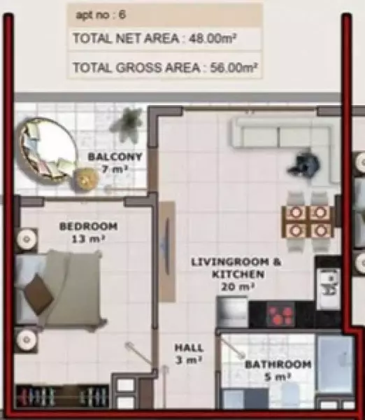 Новая квартира 1+1 на втором этаже 5-этажного дома (квартира №6), район Махмутлар – возле вторничного рынка. Уютный небольшой жилой комплекс с инфраструктурой и отличным расположением в центре популярного Махмутлара. Все квартиры 1+1 в данном проекте от застройщика распроданы!