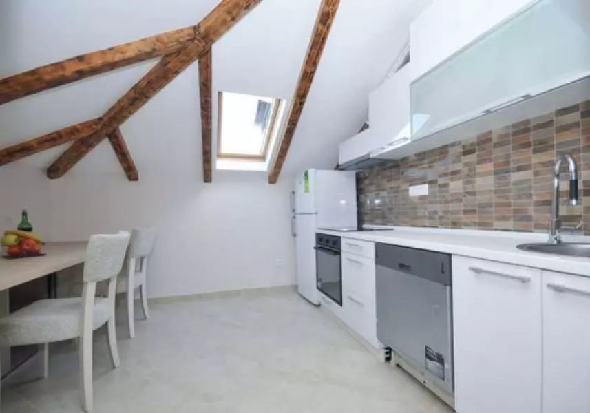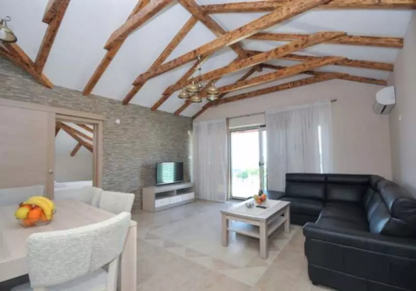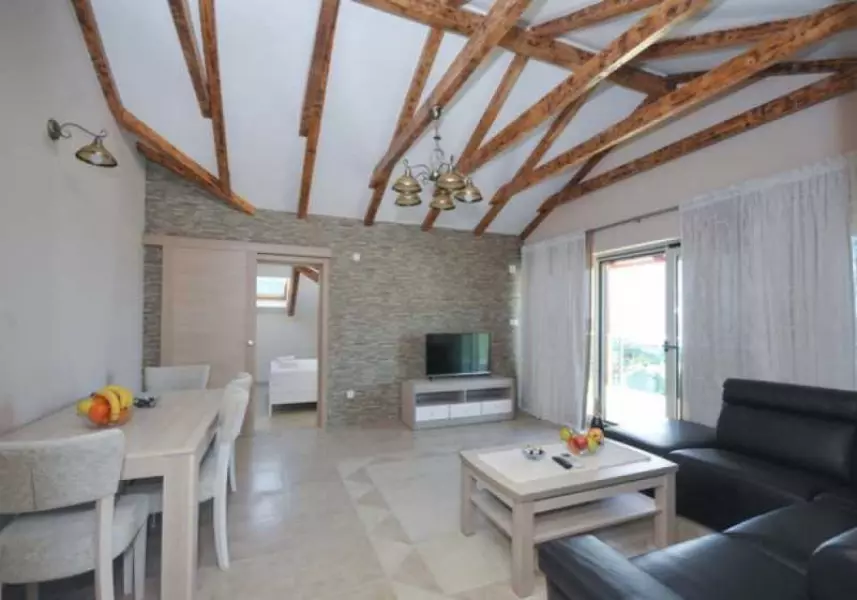 Очень выгодное положение – вблизи от замечательного пляжа, магазинов и ресторанов, и, в то же время, благодаря расположению на небольшой возвышенности, откуда открывается изумительный вид на Адриатику – придаёт ему функционал и приватность, где могут безопасно играть дети, и Вы можете наслаждаться тишиной, чистым воздухом, пением птиц и пейзажами.