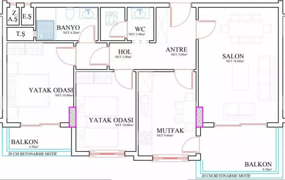 Продается новая светлая квартира планировки 2+1 в новом жилом комплексе, расположенном в районе Демирташ.