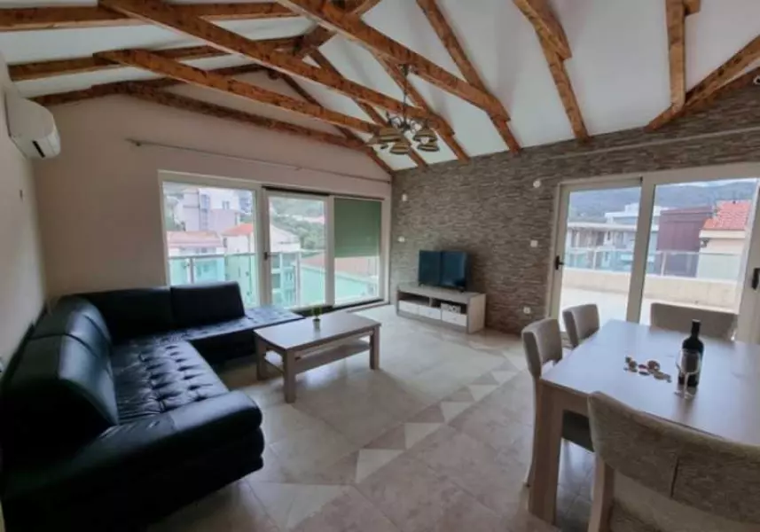 Очень выгодное положение – вблизи от замечательного пляжа, магазинов и ресторанов, и, в то же время, благодаря расположению на небольшой возвышенности, откуда открывается изумительный вид на Адриатику – придаёт ему функционал и приватность, где могут безопасно играть дети, и Вы можете наслаждаться тишиной, чистым воздухом, пением птиц и пейзажами.