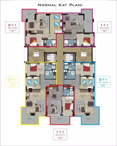 21 1+1, 34 2+1, 1 3+1 и 1 4+1 пентхаус.