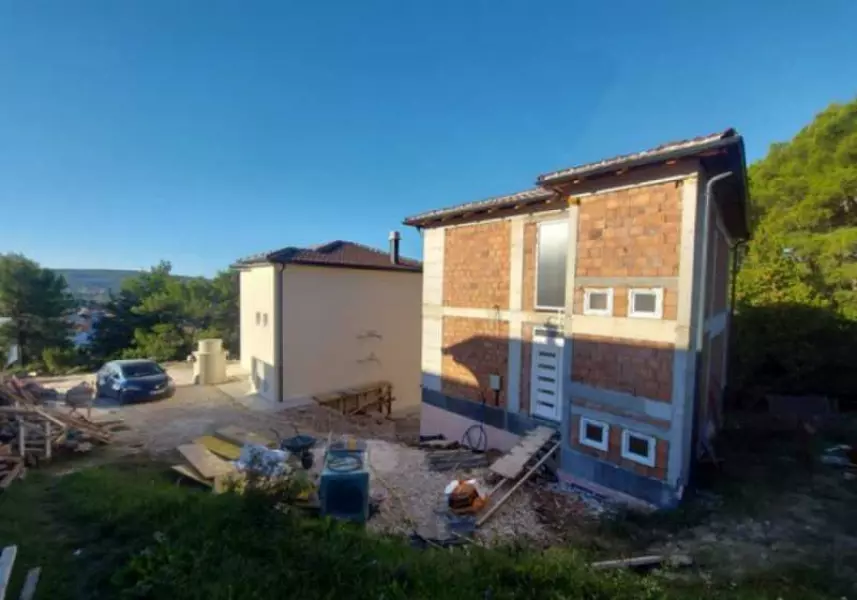 Тиват, район Мрчевац. Новая трёхэтажная вилла с четырьмя спальнями с бассейном на стадии строительства