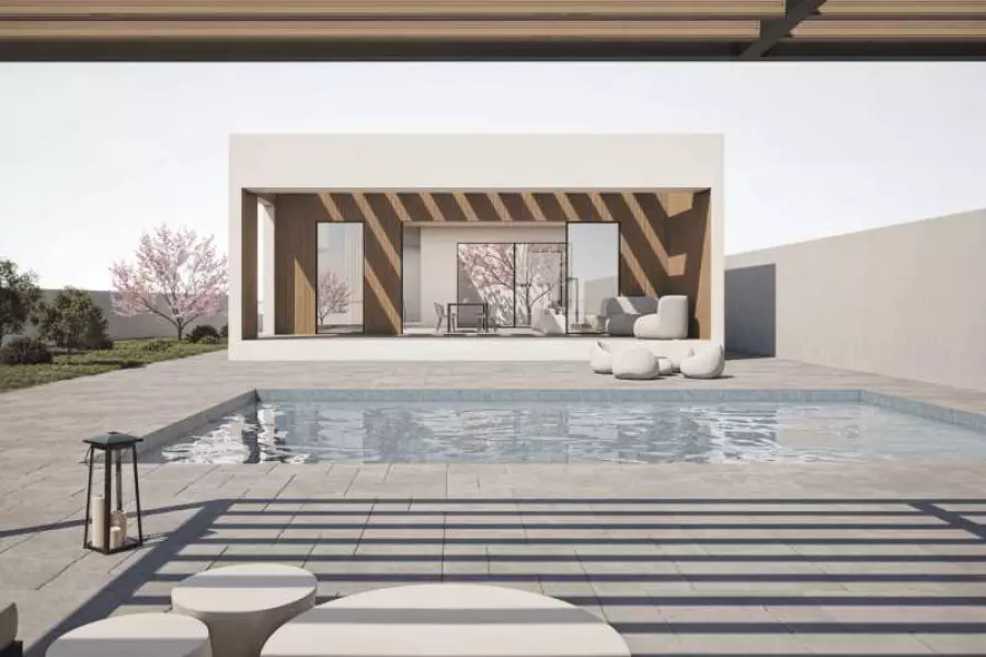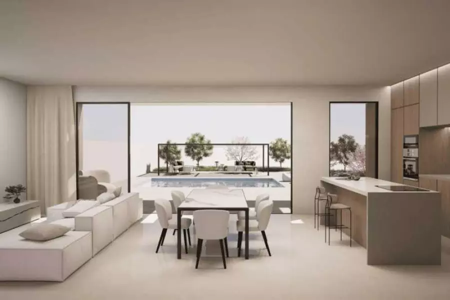 Новая вилла от застройщика в один уровнь, общей площадью 248 м2. В доме четыре комнаты: гостиная-столовая, кухня открытого типа, три спальни, три ванные комнаты. Кухня меблирована, ванные комнаты оборудованы и меблированы, есть автоматические жалюзи, охранная сигнализация, предустановка системы кондиционирования, системы умный дом, вентиляции, интернета, ТВ. Кухня предлагается как открытое пространство, соединенное с гостиной, патио и коридором, который ведет в ванную комнату и кладовую. Дом имеет современный дизайн – он выполнен в светлых тонах, большие панорамные окна от пола до потолка делают дом всегда очень светлым.