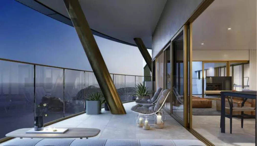 Квартира на 33 этаже площадью 96,2 кв. м. В квартире две спальни, две ванные комната, просторная гостиная с кухней и обеденной зоной, большая терраса с фантастическим видом на море, горы и город.