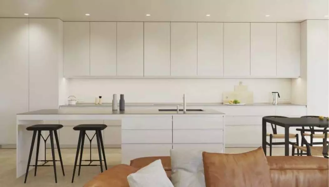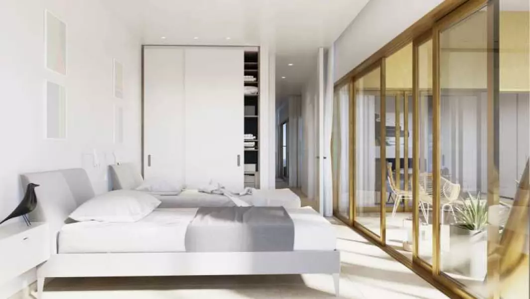 В стоимость жилья входит: полностью оборудованные ванные комнаты, встроенные шкафы, кондиционер (тепло/холод). Кухня оборудована мебелью, белой столешницей, раковиной из нержавеющей стали, электрической духовкой, микроволновой печкой, посудомоечной машиной, вытяжкой, керамической плитой и холодильником. А также окна с двойным остеклением и солнцезащитным фильтром, два парковочных места и кладовая в подземном гараже.