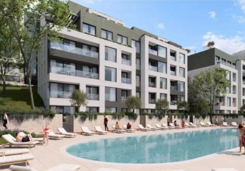 Тиват. Новый многоквартирный жилой комплекс с двумя открытыми бассейнами в непосредственной близости от центра города в окружении зелени и в гуще городской инфраструктуры