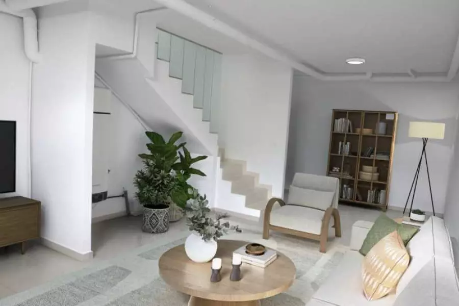 Таунхаус имеет три уровня и общую площадь 148,80 кв. м. Состоит из двух спален, двух ванных комнат, светлой гостиной, совмещенной с кухней, террасы и солярия (большая терраса на крыше), а также помещение свободного назначения на цокольном этаже с естественным освещением. Есть участок площадью 16 кв. м с парковочным местом.