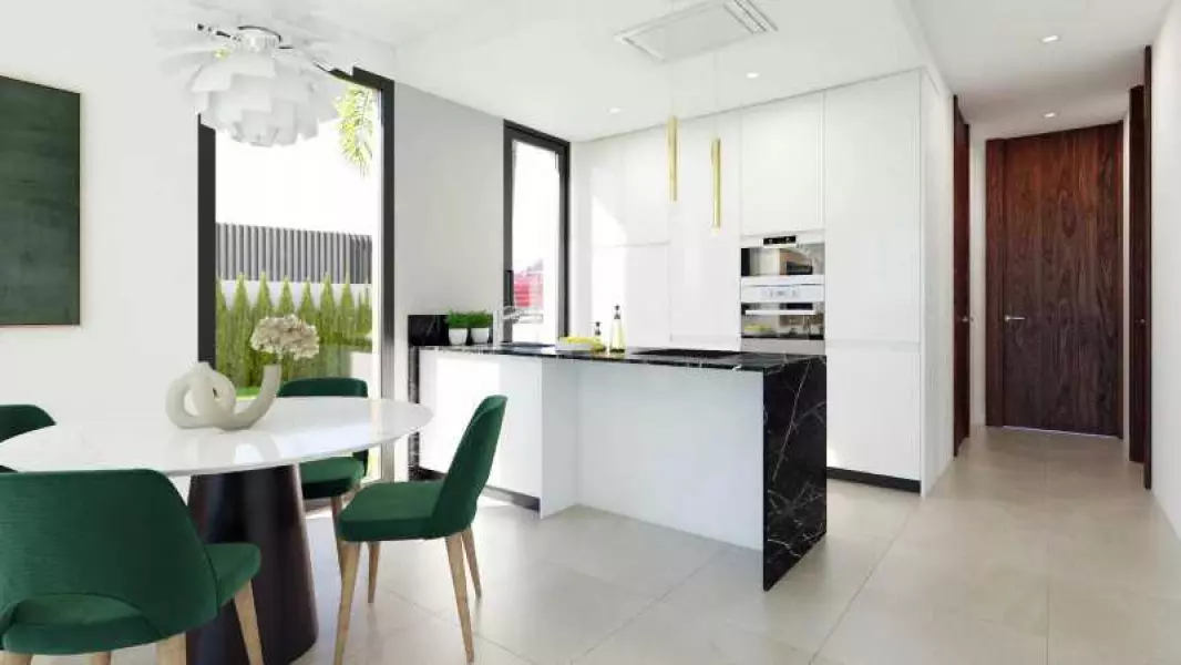 В продаже новый таунхаус с видом на море в Финестрате. Площадь таунхауса 109 кв. м., площадь участка 179,55 кв. м. Финестрат – это уютная урбанизация с видом на море в семи минутах езды к северу от Бенидорма, в трех минутах до торгового центра, супермаркетов, а также тематических парков с аттракционами и экзотическими животными – все это уникальные характеристики Финестрата. Всего в пяти минутах езды находится пляж Cala Finestrat – тихий, уютный, с золотым песком и прибрежными ресторанами со Средиземной кухней. Рядом расположены поля для гольфа.