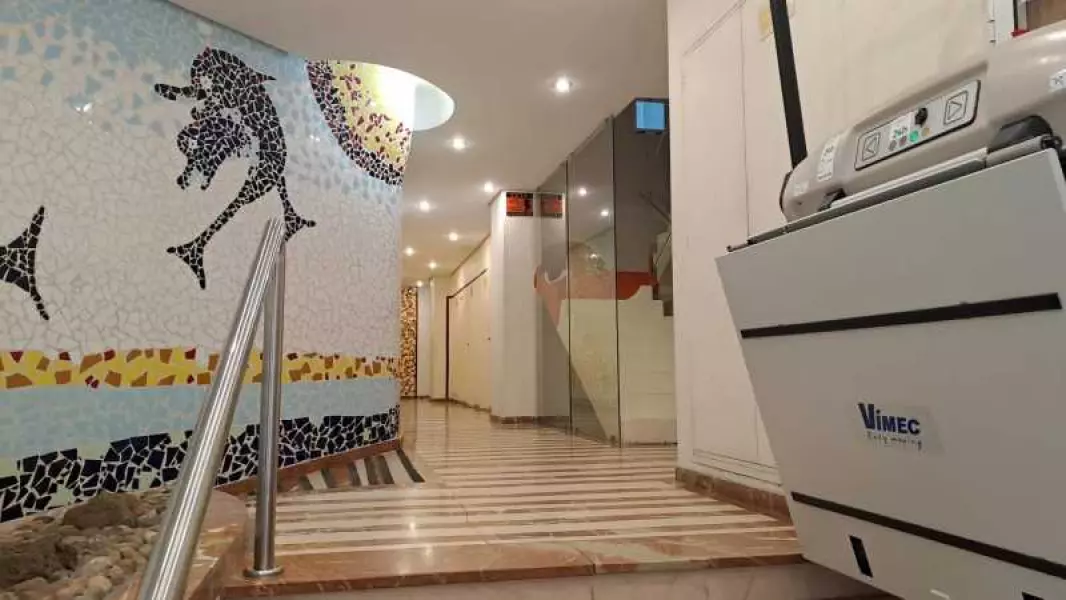 Когда мы входим в здание, нас встречает красивый вход, украшенный мозаичной плиткой, а также в здании есть система безопасности. Войдя в квартиру, перед нами открывается кухня с прачечным помещением. Кухня имеет раздвижную дверь для экономии места.