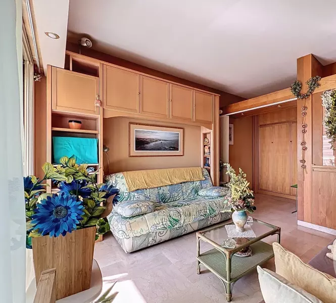 Расположенная на верхнем этаже с прекрасным видом на море, эта квартира имеет красивый объем 27 м2 и лоджию 7 м2.