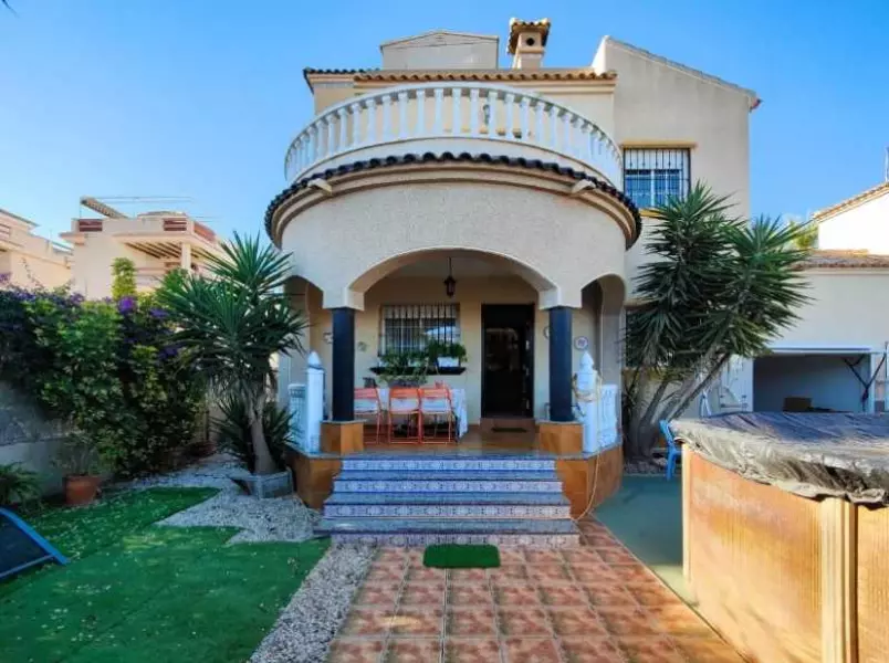 Отдельная угловая вилла в средиземноморском стиле с закрытым гаражом находится в очень небольшом сообществе без каких-либо коммунальных расходов. Он находится в нескольких минутах ходьбы от супермаркета Aldi, нескольких торговых центров и пляжей Ориуэла Коста и Торревьеха.