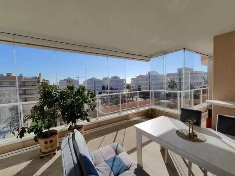 Квартира в хорошем состоянии площадью 72,25 кв.м. состоит из трех спален, двух ванных комнат, оборудованной кухни, подсобного помещения, просторной гостиной-столовой, застекленной террасы, где круглый год можно наслаждаться солнцем. Продается с мебелью и оборудованием: тумбы, зеркала, встроенные шкафы, духовка, бойлер. Квартира находится в закрытой урбанизации с бассейном.