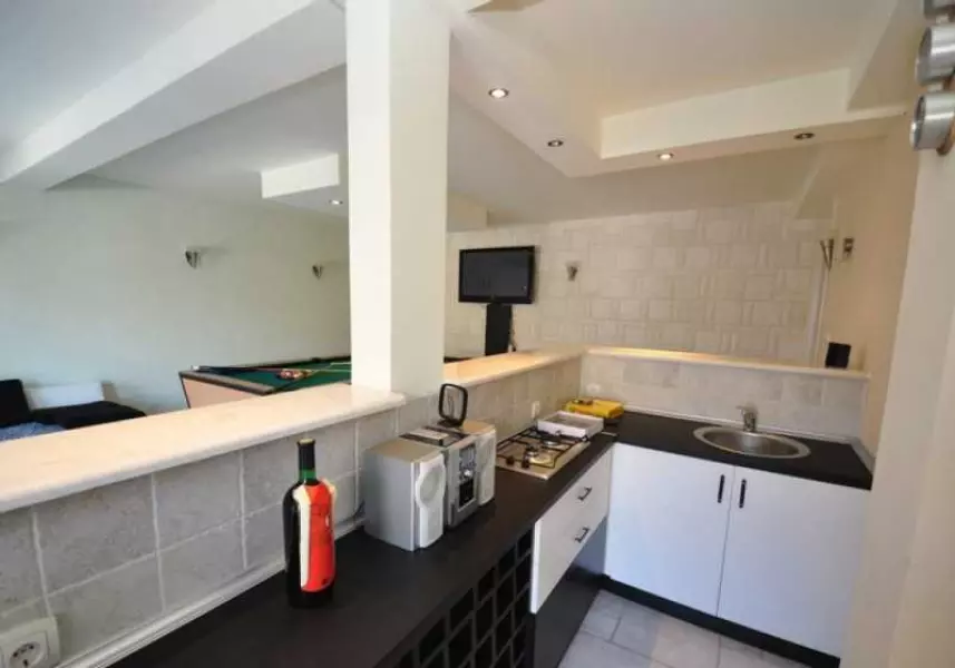 Эта вилла – самое подходящее место для отдыха с семьёй. Большой бассейн с морской водой(!) и сад с медитеранскими деревьями – живописное место для уединения и семейного времяпрепровождения. Площадки для волейбола и баскетбола – очень удачное дополнение, Вашим детям есть куда тратить свои силы. К морю от виллы, ведёт пятидесятиметровая лестница.
